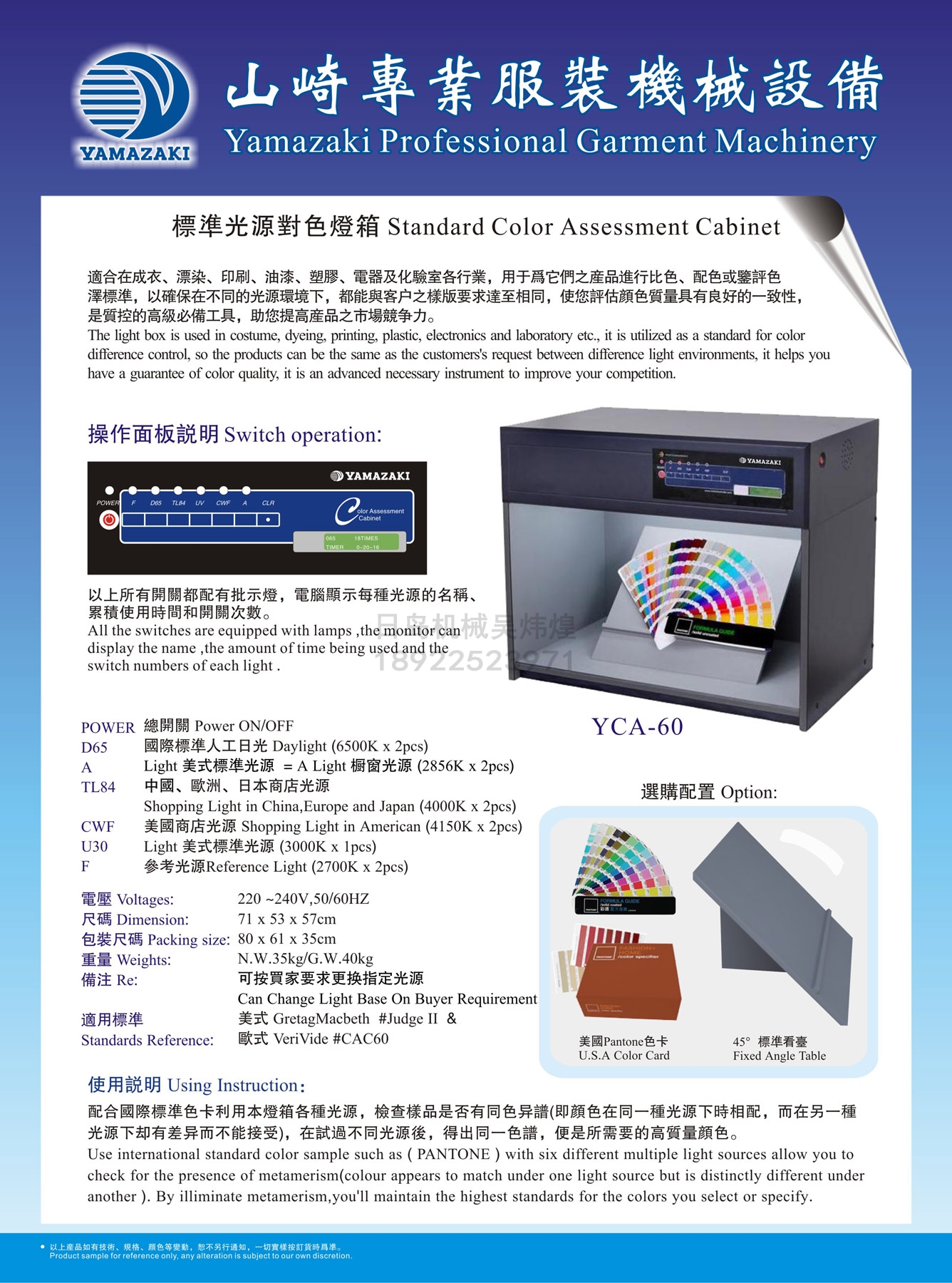 • YAMAZAKI YCA-60標準六光源對色燈箱