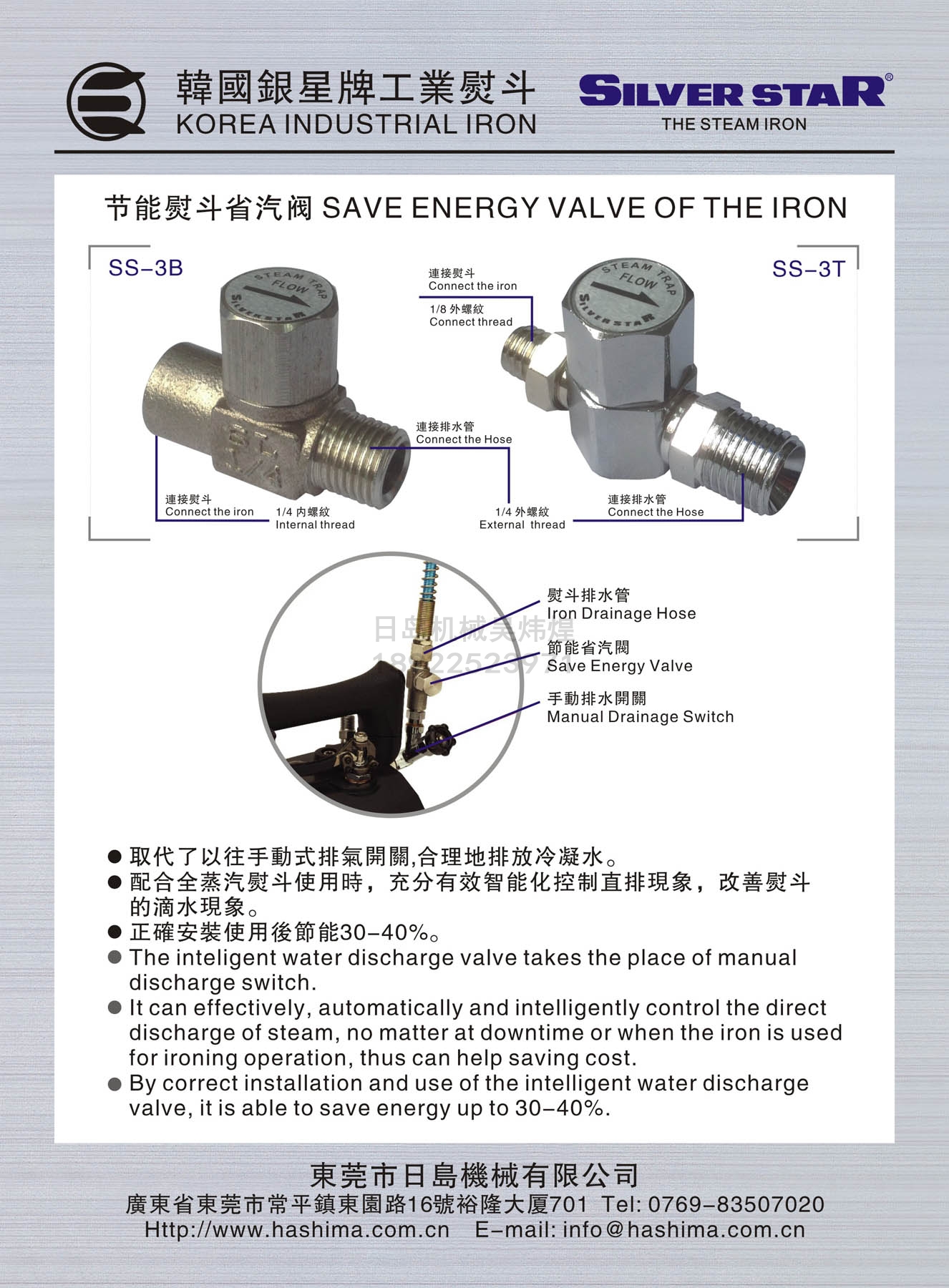 • SILVER STAR銀星節能熨斗省汽閥 疏水閥SS-3B/T